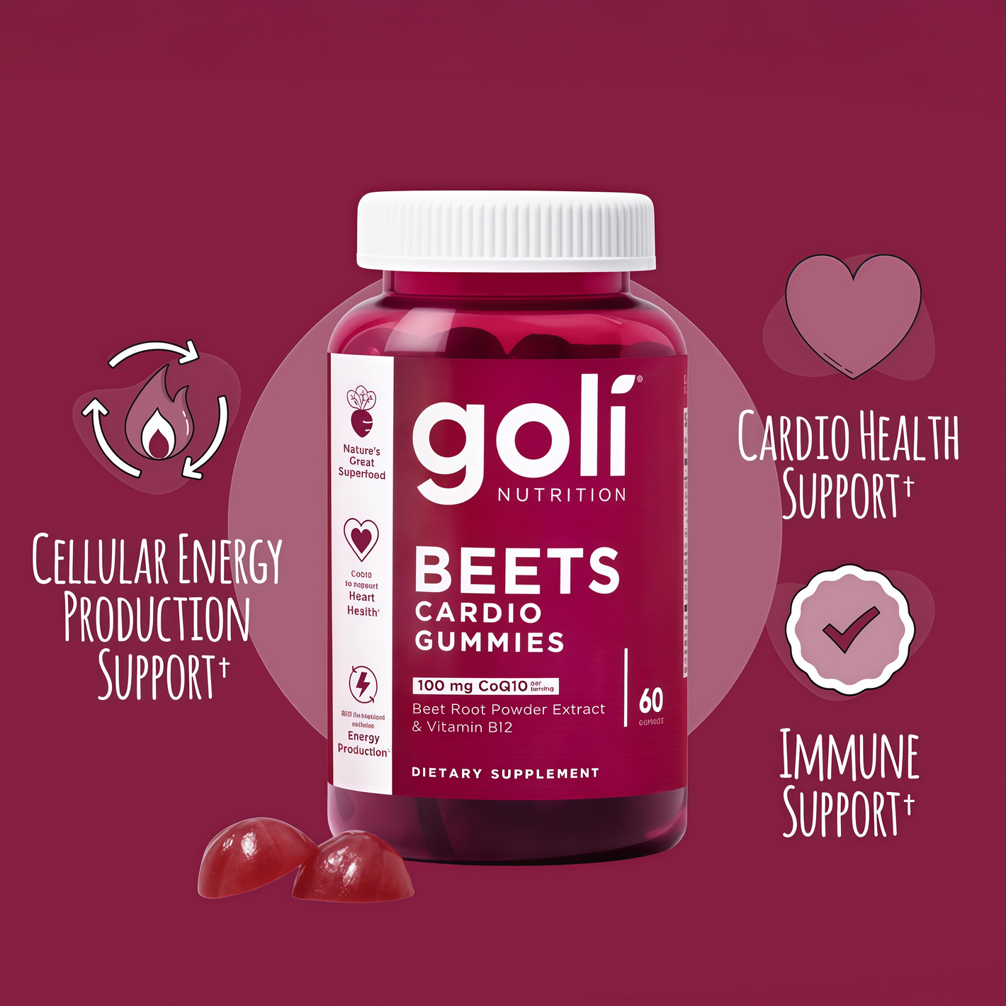 Goli Nutritional Supplement, Beets CardioGummy-60 Count-100mg CoQ10 & BeetRoot Extract - Gluten-Free, Vegan, Non-GMO,and Gelatin-Free. Nature's Great Superfood.